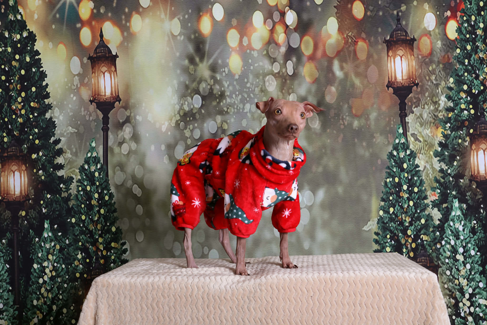 Geweldige schitterende pyjama/suit, echt een eye catcher en een must have voor iedere kleding galarobe voor uw hond. Deze geweldige pyjama is van fleece dus heerlijk zacht, hij heeft geen capuchon maar een hoge kraag waardoor de nek lekker warm blijft de sluiting zit op de rug door middel van een rits. Het materiaal is licht maar warme fleece dat goed ademt, het pak is goed te gebruiken zowel voor binnen als voor buiten. . .======================================================================================